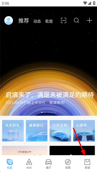 1、在華為乾崑首頁,點擊底部商城選項,進入商城頁面。