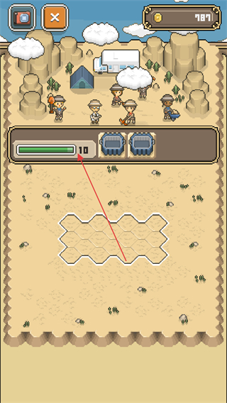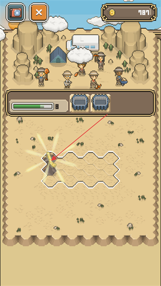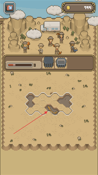 1、在挖掘場景中,點擊上方的道具按鈕,準(zhǔn)備使用挖掘道具。