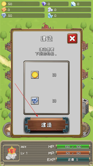 1、進(jìn)入游戲后,在主頁(yè)面我們可以點(diǎn)擊建筑,消耗金幣與礦石來建造建筑。