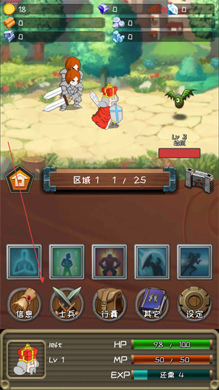 3、進(jìn)入戰(zhàn)斗區(qū)域界面,士兵會(huì)自動(dòng)部署與敵人戰(zhàn)斗,積累經(jīng)驗(yàn)與資源。