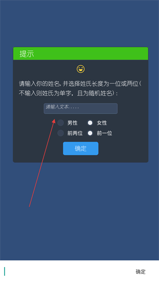 2、在提示界面隨便輸入姓名,選擇性別等,完成后點擊確定按鈕進(jìn)入人生流程。