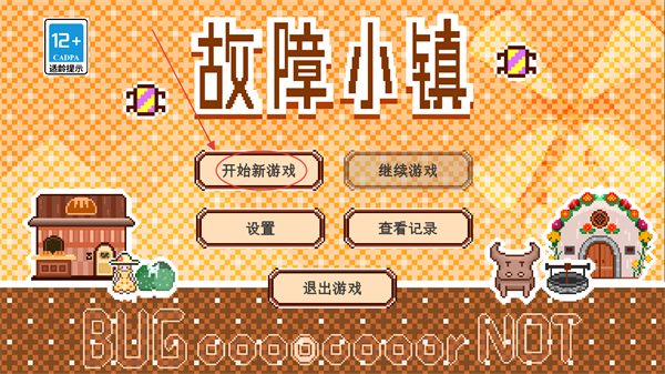 1、進(jìn)入故障小鎮(zhèn)后,點(diǎn)擊開始新游戲開啟游玩,也可選繼續(xù)游戲加載進(jìn)度,或通過其他按鈕調(diào)整設(shè)置。