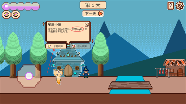 2、在場景中觸發(fā)魔法小屋事件,選擇互動選項(xiàng)推進(jìn)劇情,完成當(dāng)前場景的互動內(nèi)容。