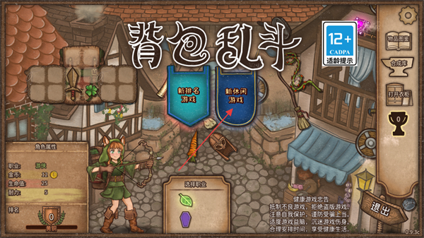 1、進(jìn)入背包亂斗界面,可選擇新休閑游戲等模式,同時(shí)查看角色職業(yè)等屬性,準(zhǔn)備開(kāi)啟游戲進(jìn)程。