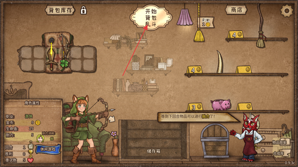 3、完成物品籌備后,點(diǎn)擊開(kāi)始背包亂斗進(jìn)入游戲,后續(xù)回合可按照提示進(jìn)行物品融合操作。