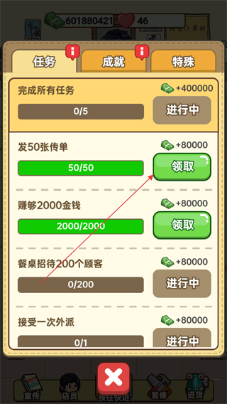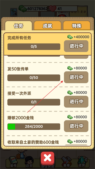 1、進入任務界面,查看發(fā)50張傳單等任務進度。