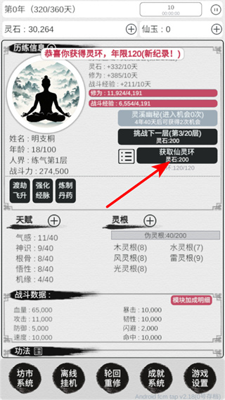 3、在歷練界面,點(diǎn)擊獲取新靈環(huán)可解鎖新的靈環(huán)加成,提升自身的屬性如靈氣、戰(zhàn)力,強(qiáng)化后續(xù)戰(zhàn)斗、挑戰(zhàn)的能力。
