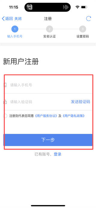 6、在新用戶注冊(cè)頁(yè)面,依次完成注冊(cè)流程,即可完成注冊(cè)操作。