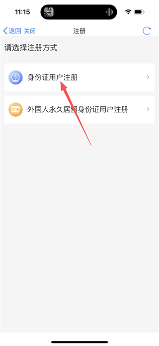 5、在注冊(cè)方式頁(yè)面,點(diǎn)擊身份證用戶注冊(cè)選項(xiàng),進(jìn)入新用戶注冊(cè)頁(yè)面。