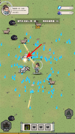 2、進(jìn)入歷練場(chǎng)景后,角色會(huì)自動(dòng)對(duì)范圍內(nèi)的妖物發(fā)起攻擊,通過持續(xù)戰(zhàn)斗消耗妖物血量,斬殺妖物后可積累修為、提升戰(zhàn)力,推進(jìn)進(jìn)度。
