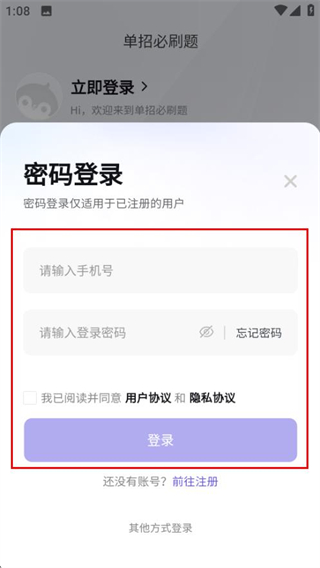 3、在登錄頁面,填寫信息并勾選協(xié)議后,點擊登錄完成賬號登錄。