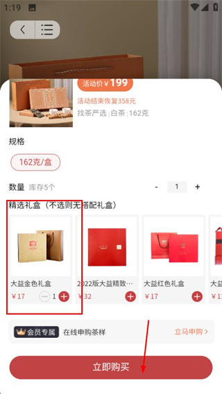 5、在規(guī)格選擇頁面,選定規(guī)格和數(shù)量后點擊立即購買,完成購買流程。