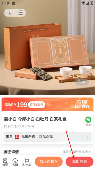 3、在白茶列表頁,點擊目標(biāo)商品,進入商品詳情頁。