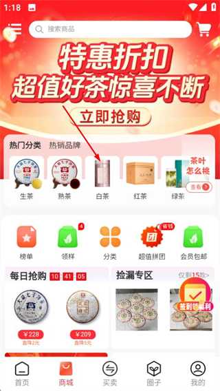 1、在找找茶首頁,點擊底部的商城選項,進入商城頁面。