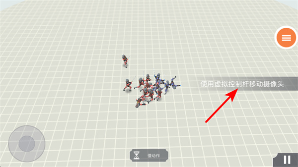 3、戰(zhàn)斗過程中,使用虛擬控制桿可移動鏡頭,調(diào)整視角來觀察戰(zhàn)場全局,更清晰地掌握雙方部隊的交戰(zhàn)態(tài)勢,便于后續(xù)調(diào)整戰(zhàn)術(shù)策略。
