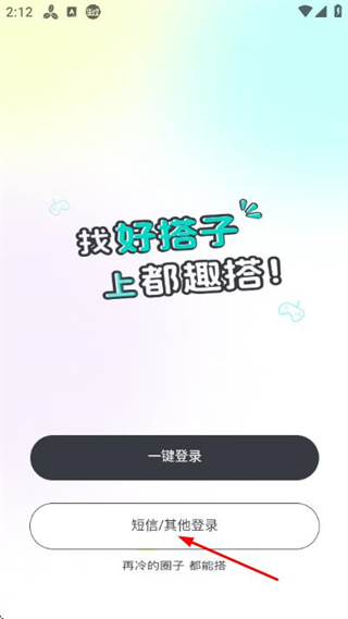 1、進(jìn)入都趣搭點(diǎn)擊短信其他登錄,進(jìn)入短信登錄頁(yè)面。