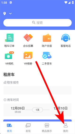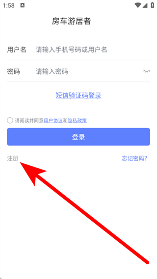 1、打開游居者房車,點擊底部的我的,進入登錄界面。