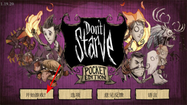 1、在游戲啟動界面,點擊開始游戲按鈕可進(jìn)入饑荒的生存世界,這是開啟資源收集與生存挑戰(zhàn)的基礎(chǔ)操作,需通過探索、采集維持角色生存。