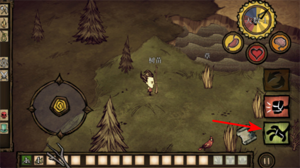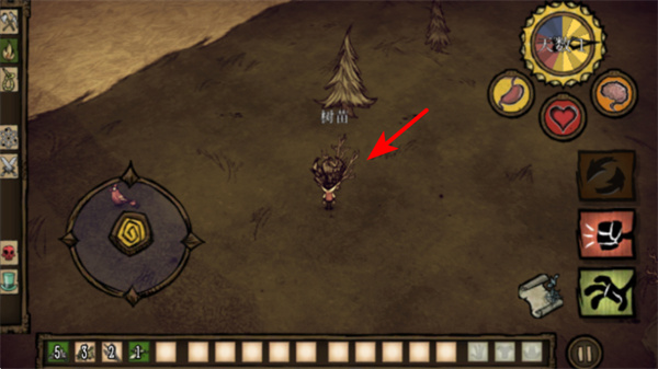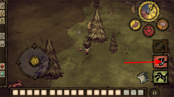 3、裝備斧頭后,靠近樹木點擊采集,可獲得木材資源,同時需注意角色的饑餓、精神等狀態(tài),采集過程中及時補(bǔ)充食物漿果、種子維持生存。