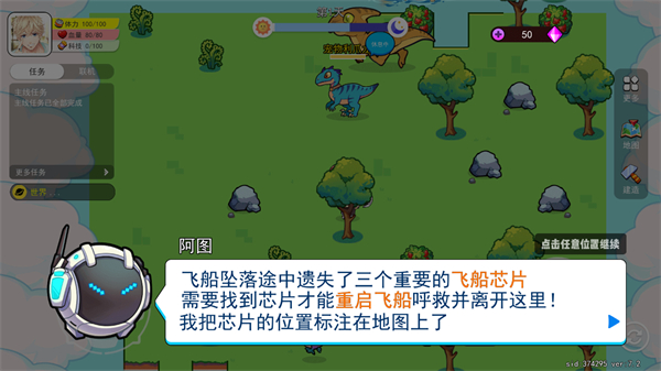 以可愛(ài)的卡通風(fēng)格呈現(xiàn)畫面,角色與恐龍?jiān)煨蛨A潤(rùn)討喜,色彩明快柔和,搭配舒緩的背景音樂(lè),弱化生存挑戰(zhàn)的緊張感,讓整體體驗(yàn)更顯輕松愜意。