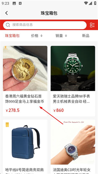 2、在珠寶箱包頁面,點(diǎn)擊目標(biāo)商品,進(jìn)入商品詳情頁。