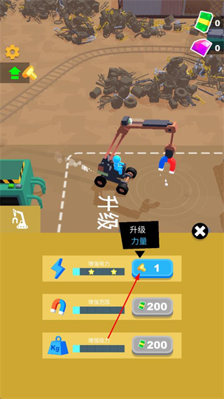 3、進(jìn)入升級界面,消耗資源提升車輛屬性,增強(qiáng)垃圾收集的效率與承載能力。