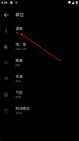 4、在單位頁(yè)面點(diǎn)擊溫度選項(xiàng),彈出溫度單位選擇框。