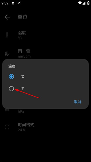 5、在溫度單位選擇框中點(diǎn)擊目標(biāo)選項(xiàng),完成溫度單位的切換操作。