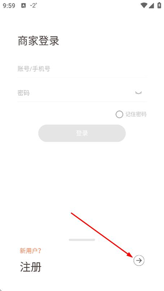 1、在登錄頁面點(diǎn)擊注冊的箭頭選項(xiàng),進(jìn)入注冊賬號頁面。