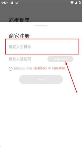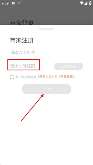 3、在注冊賬號頁面填寫驗(yàn)證碼和密碼,勾選協(xié)議后點(diǎn)擊下一步完成賬號注冊操作。