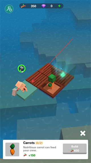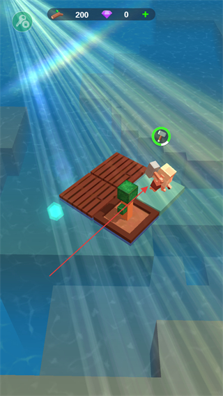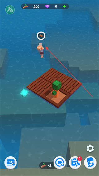 1、角色在木筏上自動(dòng)收集資源,積累材料以解鎖更多建筑,推進(jìn)建造進(jìn)度。