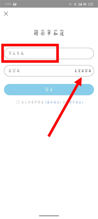 3、在登錄頁(yè)面,輸入手機(jī)號(hào)碼,點(diǎn)擊獲取驗(yàn)證碼。