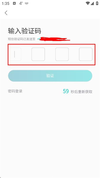3、在驗證碼輸入框中填寫收到的驗證碼,點擊驗證完成賬號的登錄操作。