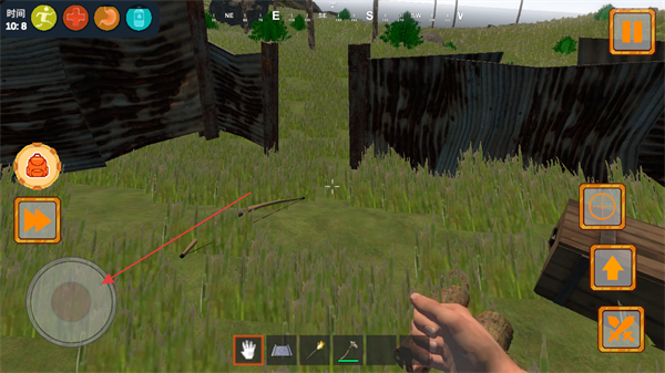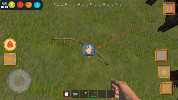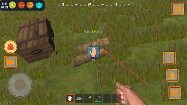 2、點擊道具上的拾取按鈕,獲取木弓、木頭等生存物資。
