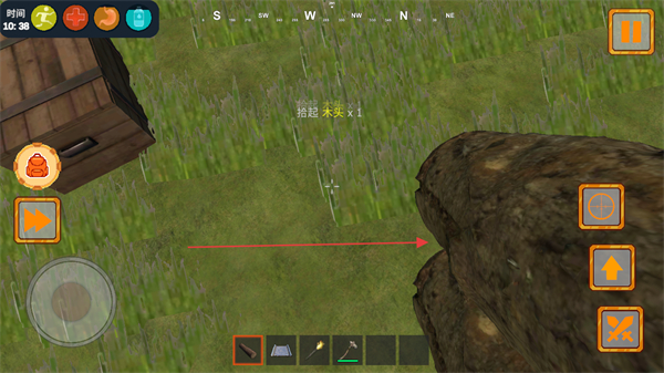 3、持續(xù)探索場景,拾取更多資源如木頭、類木,積累生存材料。
