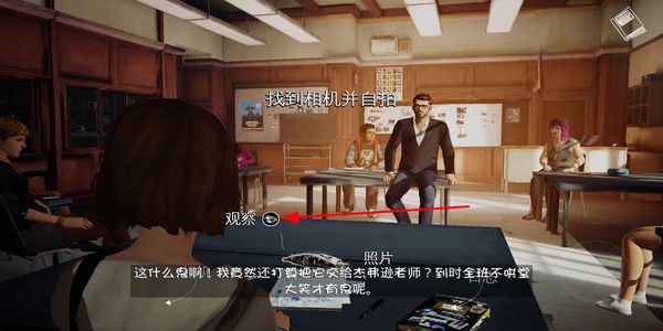2、在場(chǎng)景中找到相機(jī)道具,使用相機(jī)完成自拍操作,同時(shí)觀察場(chǎng)景內(nèi)的物品和對(duì)話內(nèi)容,了解當(dāng)前劇情信息。
