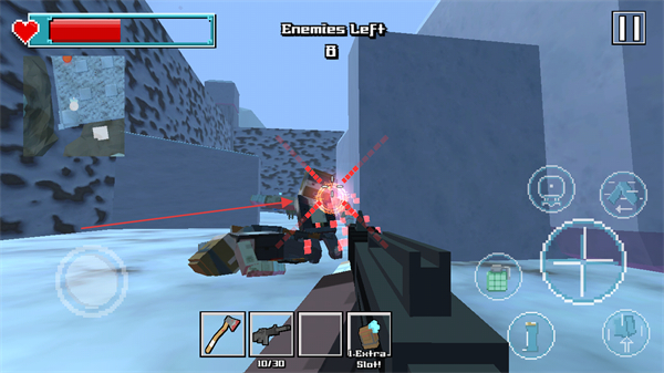 像素畫風勾勒出多樣戰(zhàn)場場景,從叢林狩獵場到廢棄都市據(jù)點,不同地圖的地形特征鮮明,射擊時的像素特效簡潔有力,營造出復古又熱血的戰(zhàn)斗氛圍。