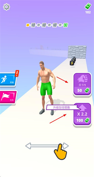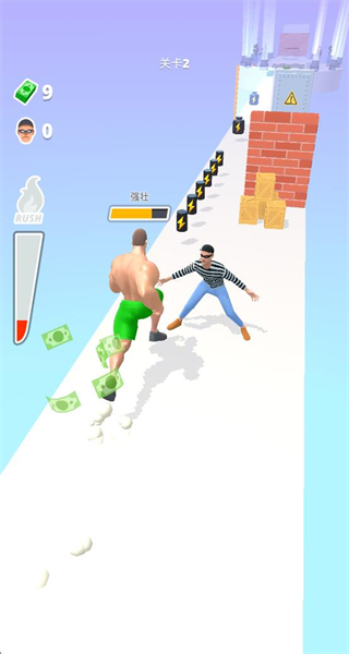 每個(gè)關(guān)卡終點(diǎn)設(shè)置與其他肌肉猛男的扳手腕環(huán)節(jié),需憑借前期積累的能量與操作技巧贏得對(duì)決,為跑酷增添最終目標(biāo)感與勝利的成就感。