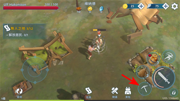 2、進(jìn)入建造界面后,選擇對(duì)應(yīng)的工具選項(xiàng),這是獲取資源的基礎(chǔ)操作,使用工具可收集場(chǎng)景內(nèi)的材料,建造內(nèi)容提供物資支持。