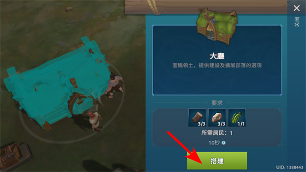 4、確認(rèn)資源與條件滿足后,點(diǎn)擊搭建按鈕,這是完成建筑建造的重要操作,搭建后建筑會(huì)生效,提供對(duì)應(yīng)的功能或推進(jìn)任務(wù)進(jìn)度。