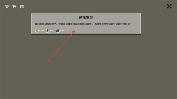 2、委托欄中顯示尋找石匠任務(wù),石匠失蹤或與哥布林有關(guān),完成該任務(wù)可獲得對(duì)應(yīng)的資源獎(jiǎng)勵(lì)。