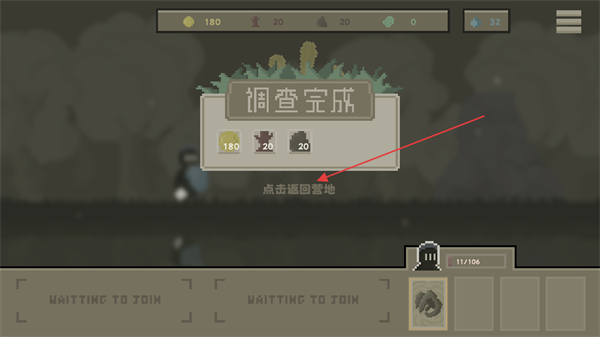 4、調(diào)查完成后可獲得對(duì)應(yīng)資源,按提示點(diǎn)擊返回營(yíng)地即可回到主界面,結(jié)束本次任務(wù)流程。