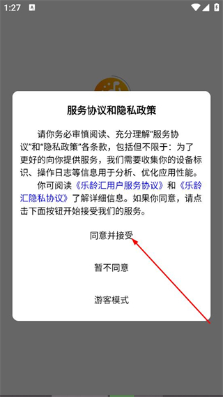 1、在服務(wù)協(xié)議和隱私政策彈窗中,點擊同意,進入登錄頁面。