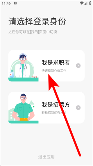 2、在登錄身份選擇頁面,點(diǎn)擊我是求職者,進(jìn)入登錄中心頁面。