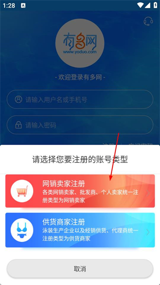 2、在登錄頁面,點擊注冊選項,進入賬號類型選擇彈窗。