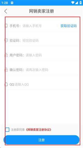 4、在注冊頁面,填寫信息并勾選協(xié)議后點擊注冊,完成賬號注冊。