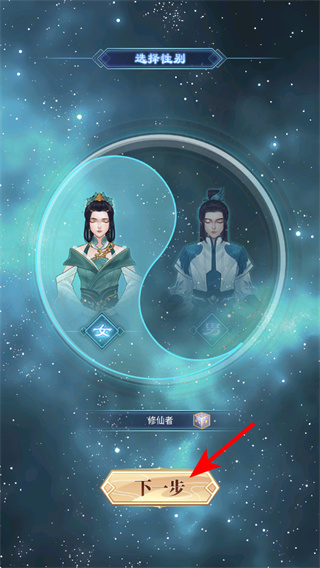 1、在性別選擇界面選定角色性別后,點擊下一步按鈕,這是推進角色創(chuàng)建流程的關(guān)鍵操作,點擊后會進入出身選擇環(huán)節(jié),繼續(xù)完善角色設(shè)定。