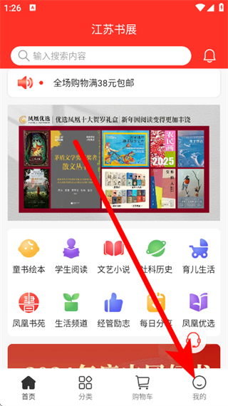 1、打開江蘇書展,點(diǎn)擊底部的我的,進(jìn)入個人頁面。
