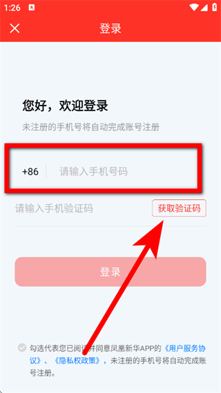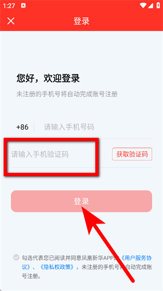 4、輸入手機(jī)驗(yàn)證碼,勾選協(xié)議后,點(diǎn)擊登錄,完成登錄。