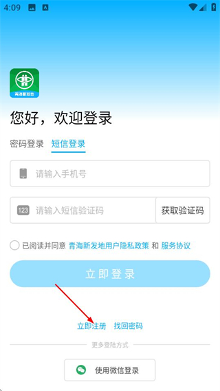 2、在登錄頁(yè)面,點(diǎn)擊立即注冊(cè)選項(xiàng),進(jìn)入注冊(cè)頁(yè)面。